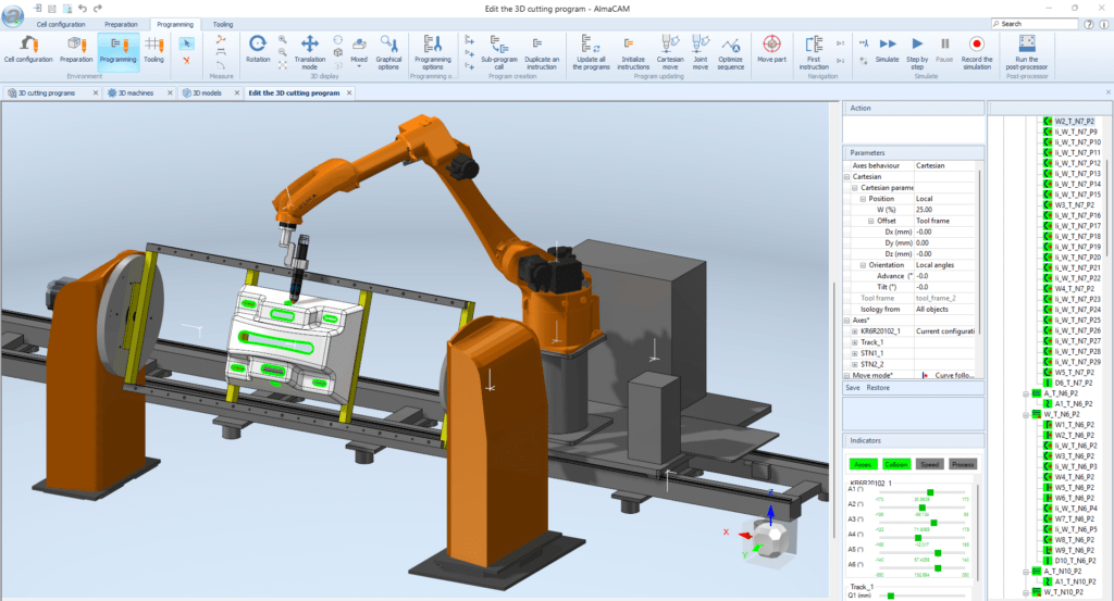 Almacam Robotics para corte é um software projetado para programar robôs de corte multi-eixos e gerenciar com eficiência operações de corte complexas.